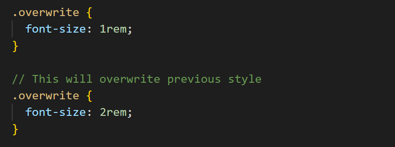 The order in which we specify our rules is important. If a style rule from the same style, with the same level exists, the last declared rule in the CSS document will be applied. So order your styles and avoid overwriting.