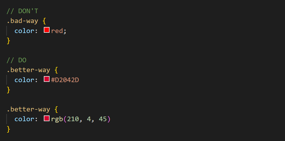 It is better if you specify your color values with hex or rgb instead of writing their names. It is more precise and you will have better consistency.