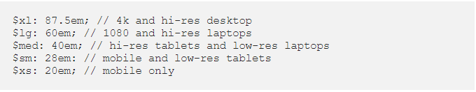 This is crucial to refactoring your site later. If you need to change your breakpoints, just change your variables, and you’re done.
