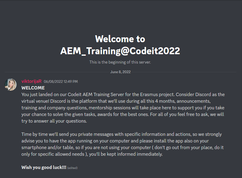 The training was held by our Trainers from Codeit Solution. We implemented the AEM program fully remotely on the ZOOM platform with recorded classes attached on our YouTube Channel and organized additional communication by Discord.